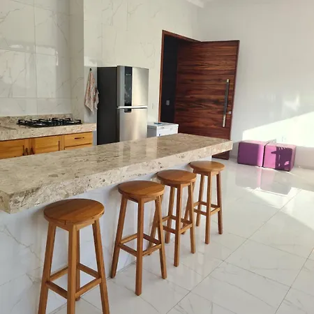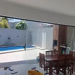 La Villa Casa Riso Dourado Paracuru está situada a tan solo 14 minutos a pie de la Praia de Paracuru y ofrece a los huéspedes la posibilidad de disfrutar de sus veladas en una terraza con una piscina.