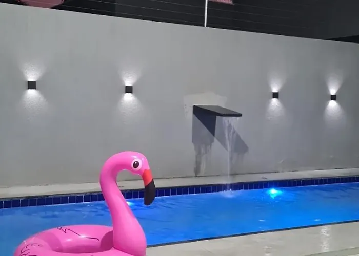 Esta casa de vacaciones incluye una cocina bien equipada, además de un comedor al aire libre para que los huéspedes puedan cocinar por sí mismos. En la cocina también hay nevera y una tostadora. Los huéspedes pueden cenar en el restaurante Formula 1, situado a tan solo 1 km. Para relajarse tras un día ajetreado, la Villa Casa Riso Dourado ofrece a sus huéspedes una piscina privada, así como una piscina de inmersión.